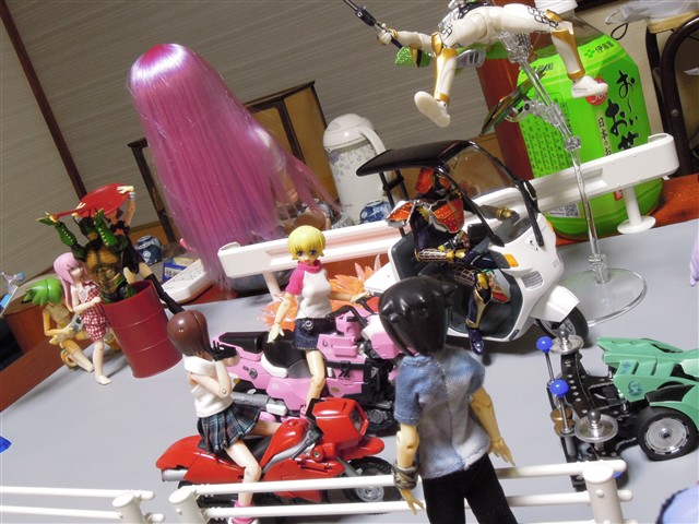 神姫やおもちゃを広げつつ、ぴーちぱいで盛り上がるかわいそうな人々の姿がそこにはあった。