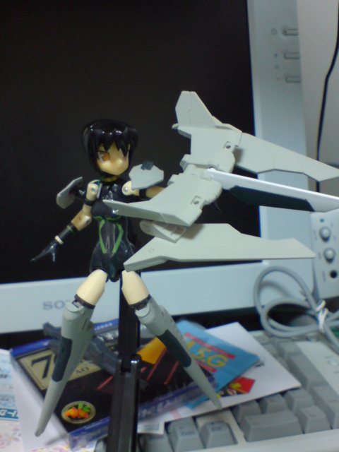 見ての通り、アイデア次第では市販のプラモのパーツでも組み合わせたりちょっと加工したりすれば色々遊べるので、皆さんも神姫に何か新しい装備をせがまれた時は玩具屋、模型店にいってみるといいかもしれません。