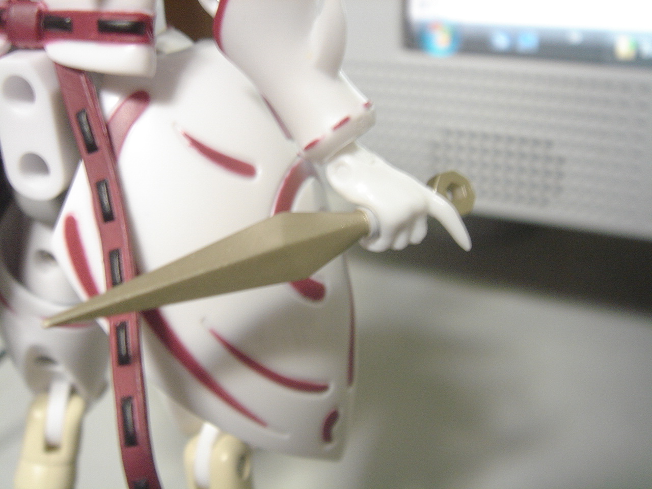 このMMSミズキ唯一の欠点はフブキになく、ミズキにのみついてくる白い翼。これが中々曲者です。装備するのにクランクパーツを使うのですが、素材が素材だけに中々奥に入りきらず、非常に取れやすい。そのくせ軟質素材のため翼自体にかなり重量があり、自立どころか付属のスタンドですら支えきる事ができず。翼そのものはかなり良く出来ているだけあって非常に残念です。