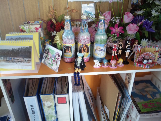 駅舎内は来訪者用ノートやファンが持ち寄ったグッズでいっぱいである。